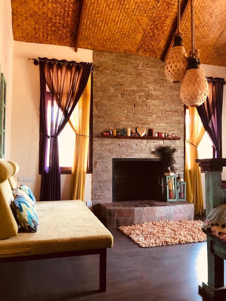 Stone benches + gaddi.. bed